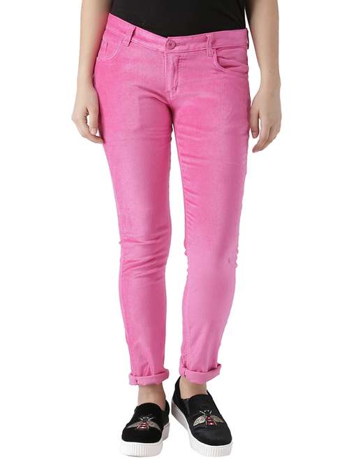 - Choose from the trendy assortment of slim fit jeans in a variety of pink colors and timeless designs to complete your clothing essential list.