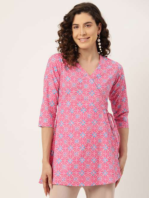 - » women printed three quarter sleeve angrakha kurti