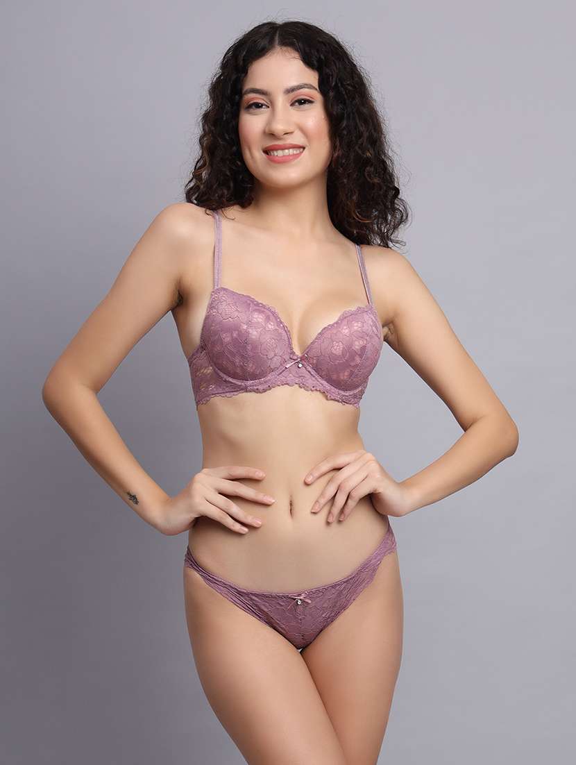 - LimeRoad brings you this exotic lingerie set from FIVEFLAG made of lace material in mauve colours.