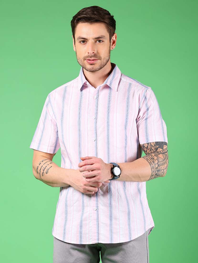 men striped collared short sleeves casual shirt - 21922788 - Very Small Image - 1