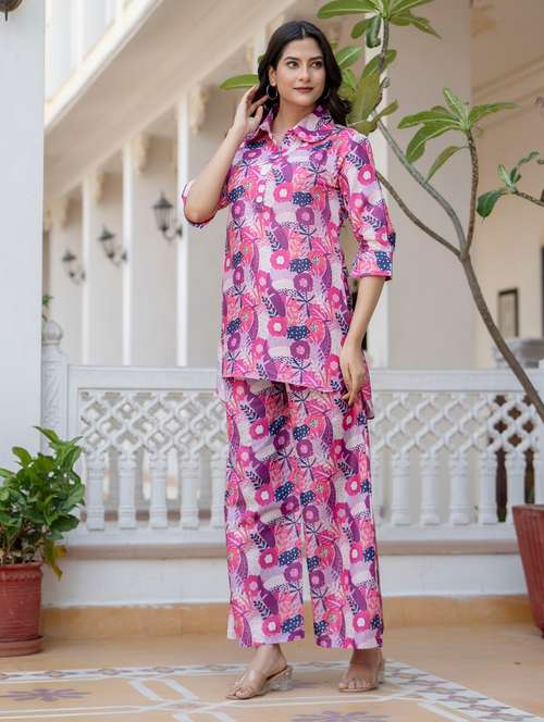 - » women floral printed three quarter sleeve ethnic co-ord set
