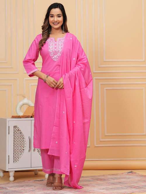 women three quarter sleeve kurta pant with dupatta set