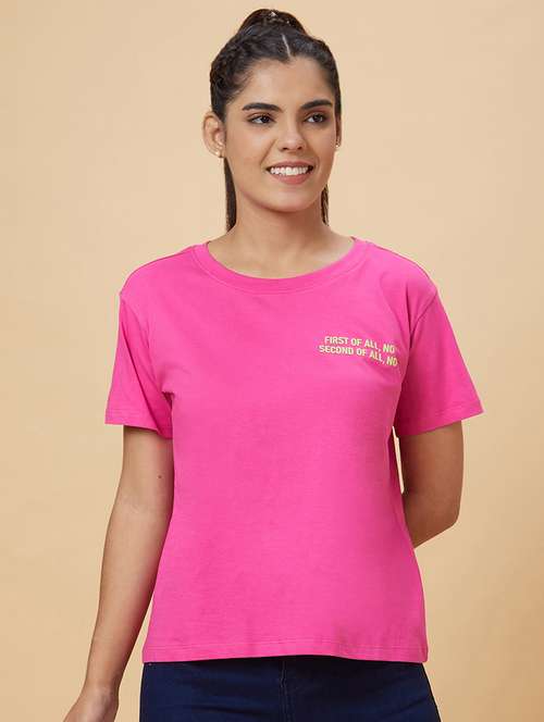 women's placement print round neck t-shirt - 20019101 - Very Small Image - 1