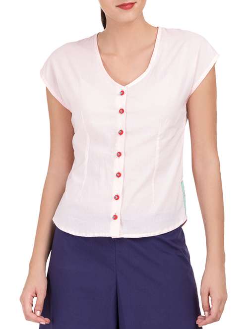 pink solid cotton straight top
