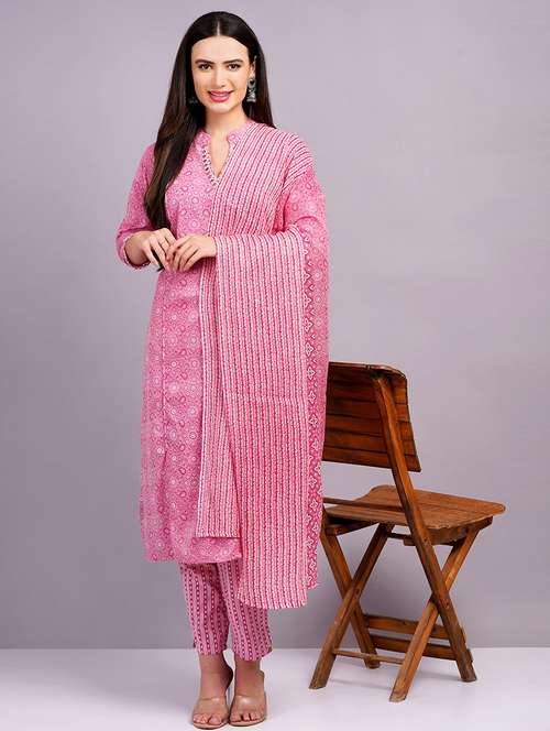 - Find gorgeous sets of ethnic wears in trending designs in pink colors suitable for casual wear of occasions.