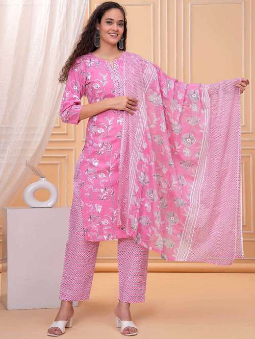 - Find gorgeous sets of ethnic wears in trending designs in pink colors suitable for casual wear of occasions.