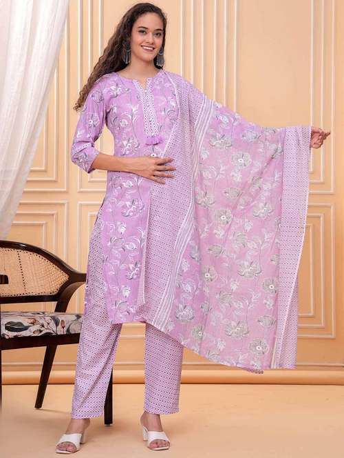 - » women floral printed three quarter sleeve kurta pant with dupatta set
