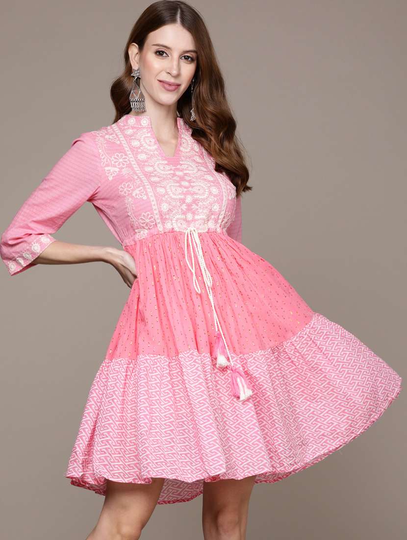 - » women mandarin collar embroidered empire line dress