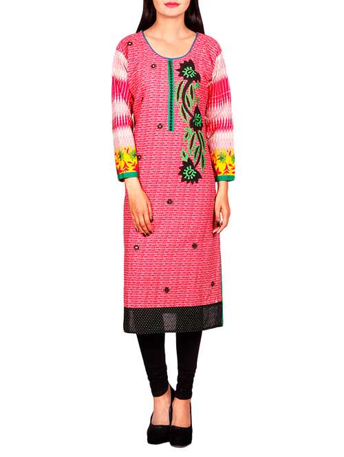 - » pink cotton embroidered straight kurta
