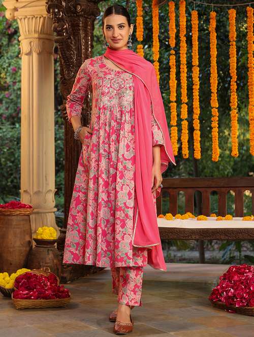 - Find gorgeous sets of ethnic wears in trending designs in pink colors suitable for festive wear of occasions.