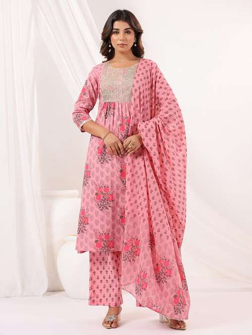 - Find gorgeous sets of ethnic wears in trending designs in pink colors suitable for festive wear of occasions.