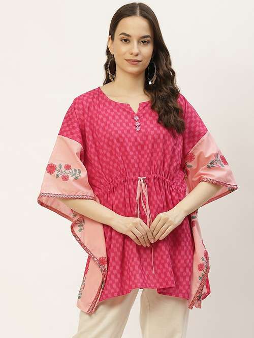 women colourblocked printed detailed kaftan top - 20610999 - Very Small Image - 1