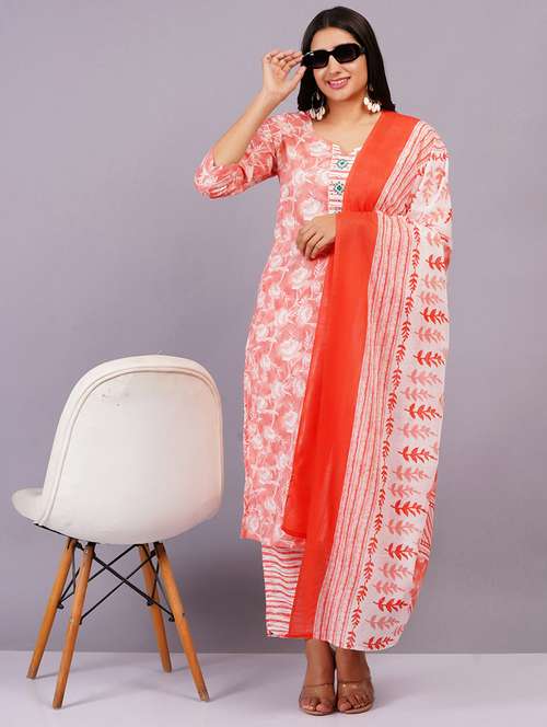 • Find gorgeous sets of ethnic wears in trending designs in orange colors suitable for casual wear of occasions.