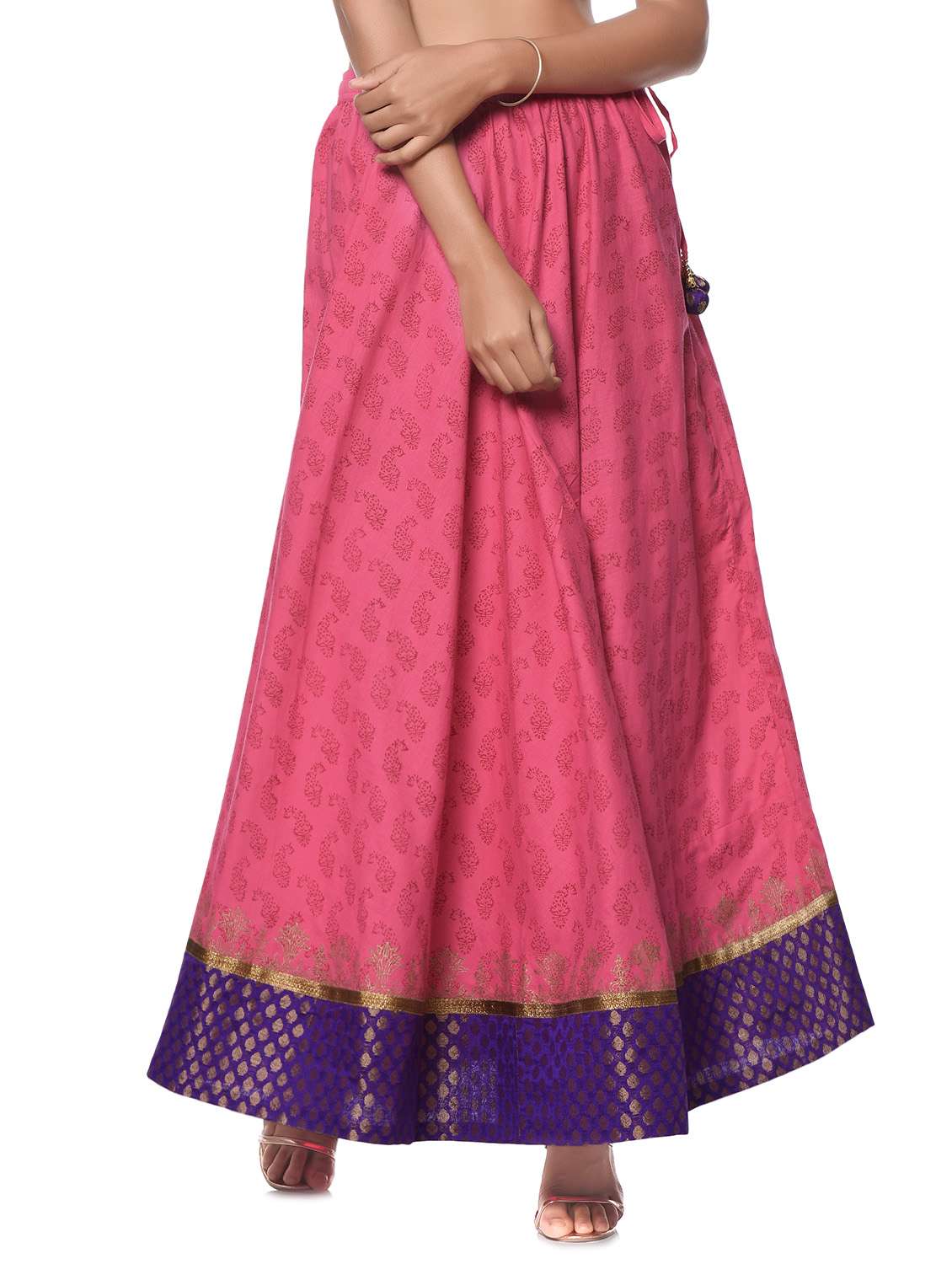 - » Pink hand block printed long cotton skirt