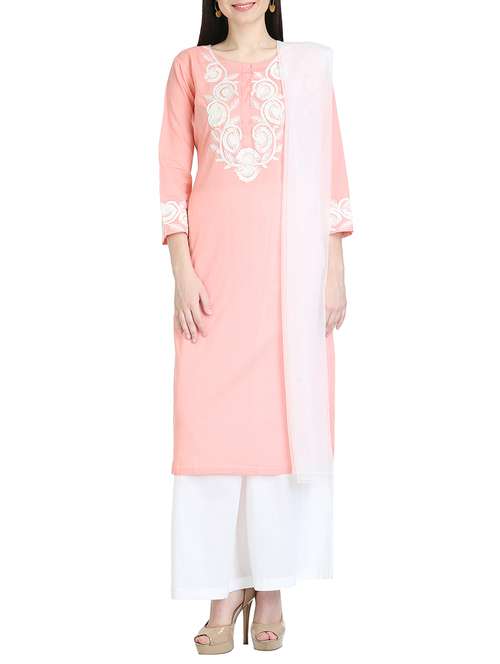 pink hand embroidered kurta dupatta set