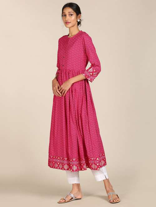 pink printed flared kurta - 18202393 - Very Small Image - 1