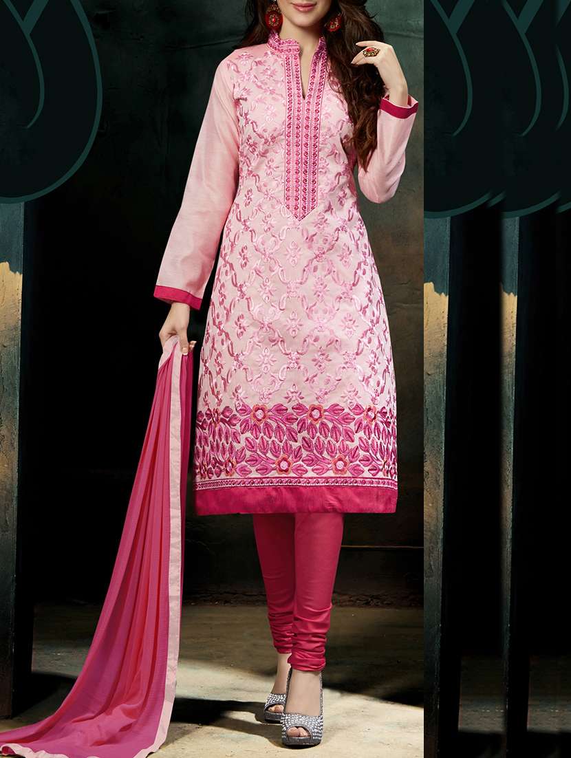 pink chanderi embroidered unstitched suit set