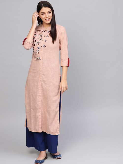 yoke embroidered straight kurta - 16973321 - Very Small Image - 1