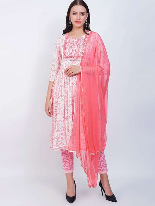 printed kurta pant set with dupatta