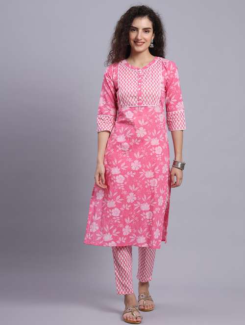 - Find gorgeous sets of ethnic wears in trending designs in pink colors suitable for casual wear of occasions.