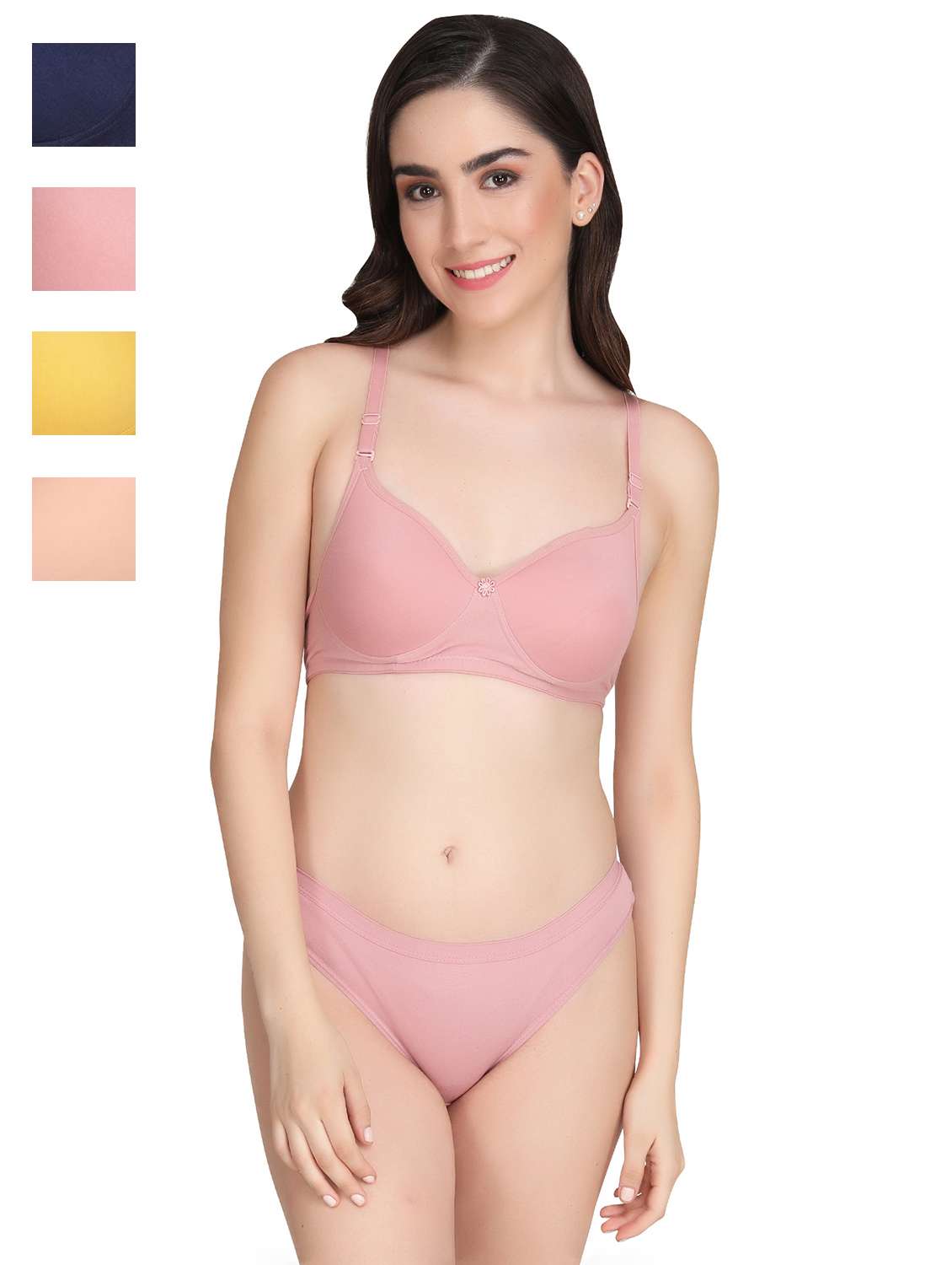Liigne Women Everyday Padded Bra Panty Set (Pack Of 4) - This Lingerie Set Made of Pure Cotton