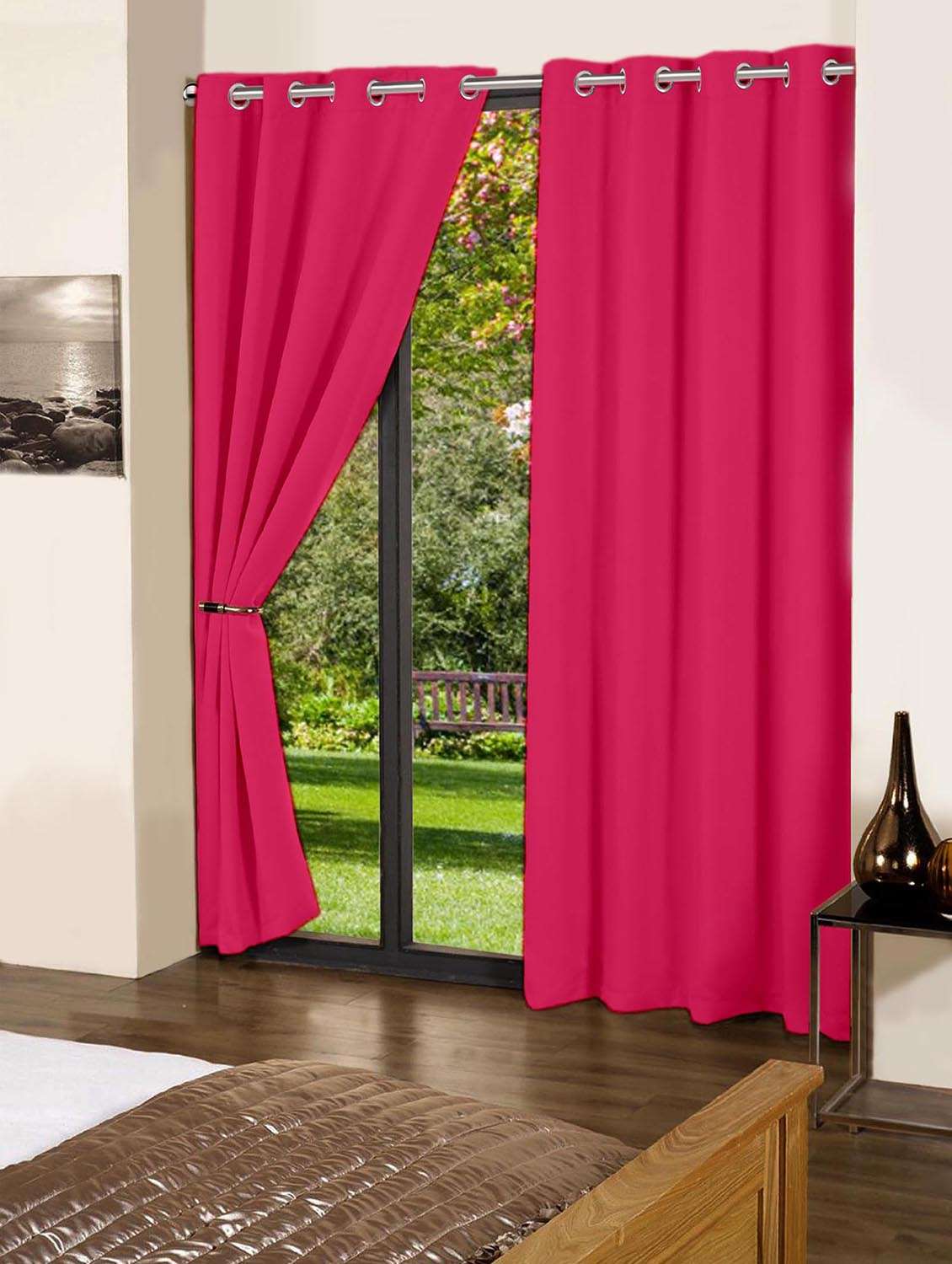 - » lushomes rasberry plain cotton curtains with 8 eyelets & plain tiebacks for long door