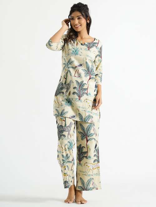 women printed three quarter sleeve co-ord set - 22013427 - Very Small Image - 1