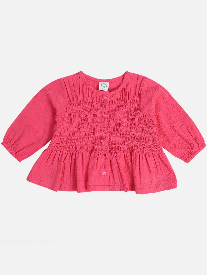 girls solid smocked round neck top