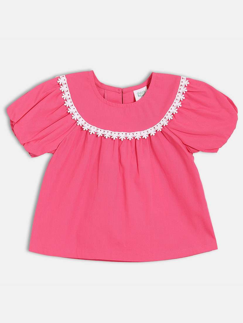- » girls solid puff sleeve top