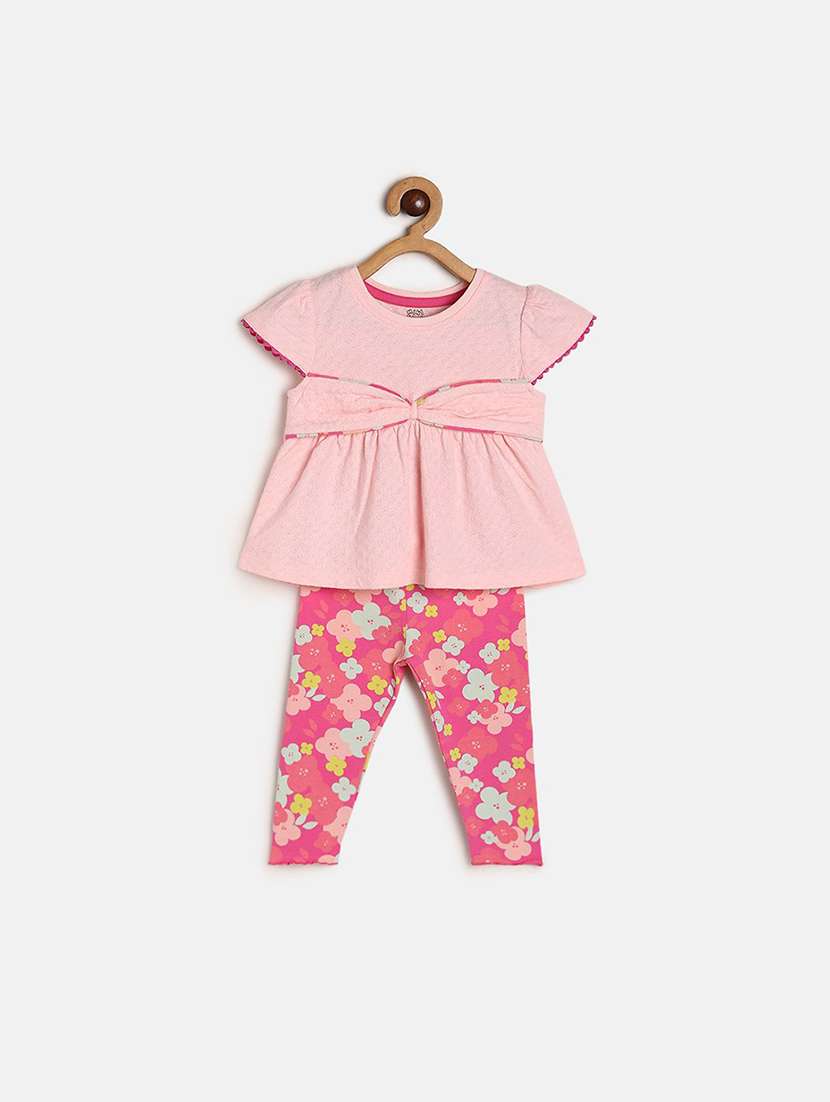 girls self design round neck full length set