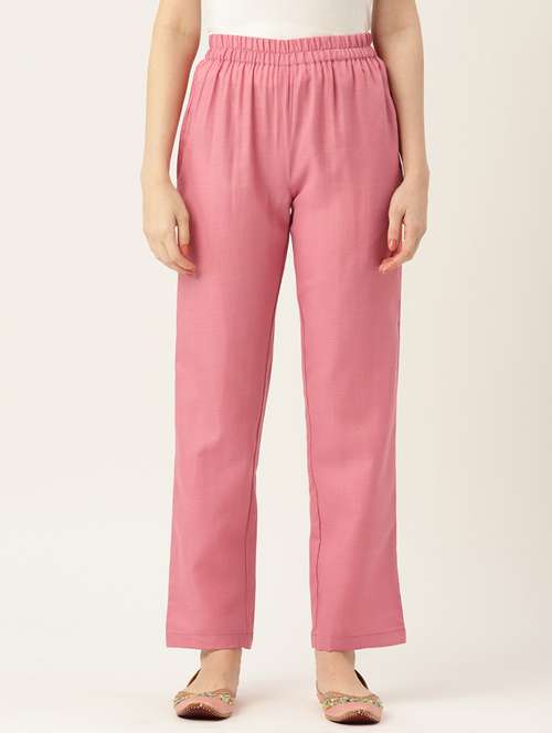 pink solid relaxed fit straight fit palazzo