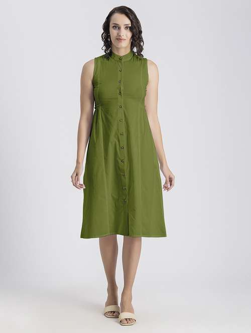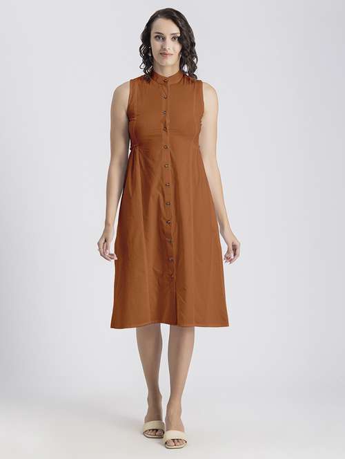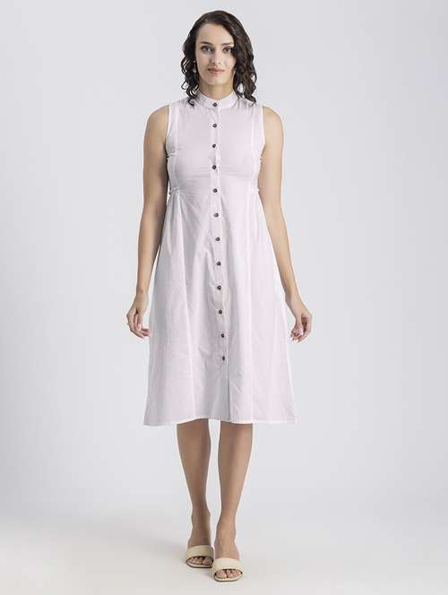- Dress up in a soothing pattern and don this dress made of cotton material.
