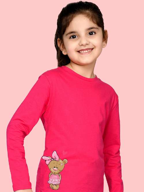 girls round neck placement print tees