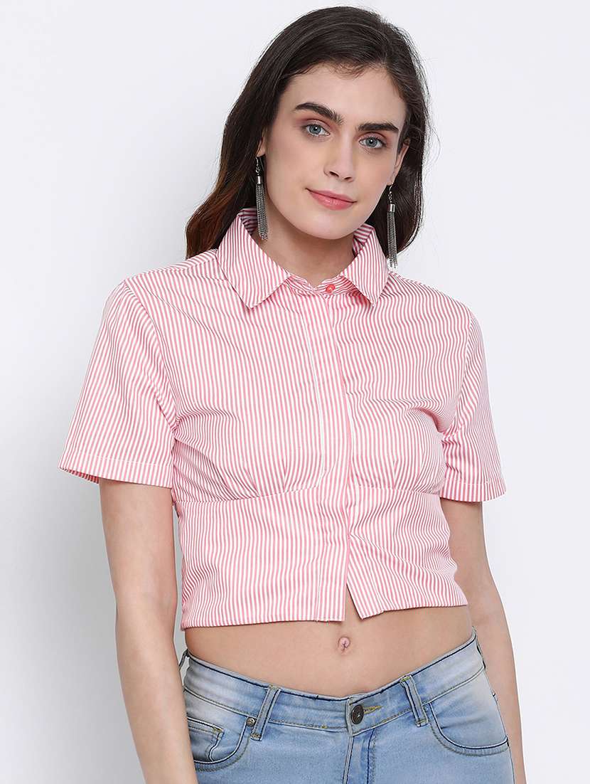 - » concealed placket crop shirt