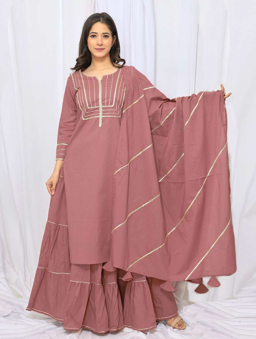 - » pink cotton kurta skirt set