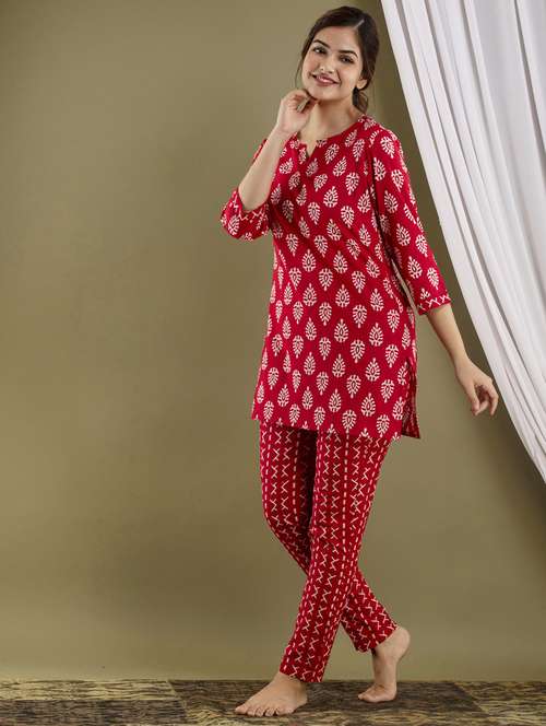 - » pink notch neck printed kurta pant set