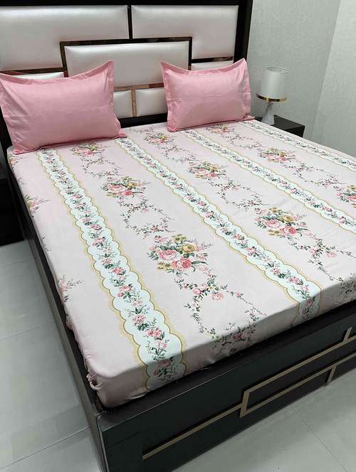 - » printed tc fitted king-sized bedsheet with elastic and 2 pillow covers