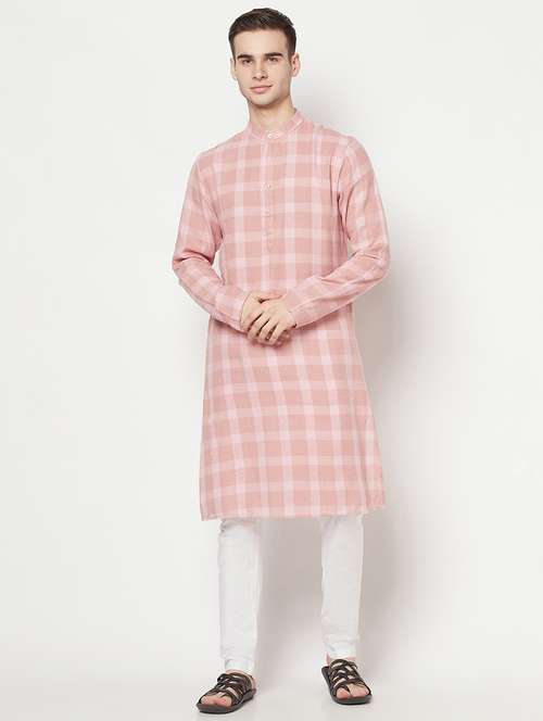 - » pink checkered long kurta