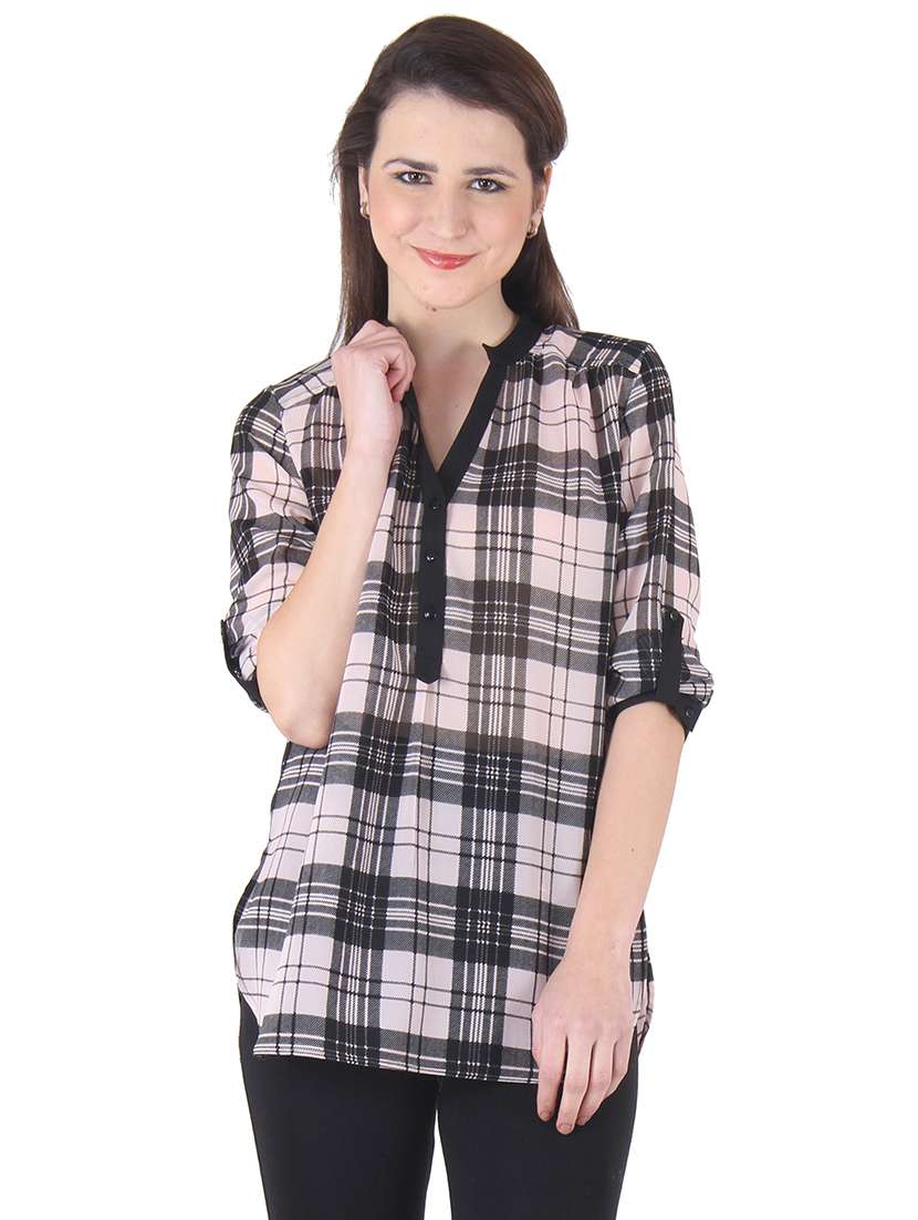 roll up sleeved checkered tunic