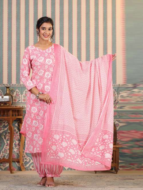 - Find gorgeous sets of ethnic wears in trending designs in pink colors suitable for casual wear of occasions.