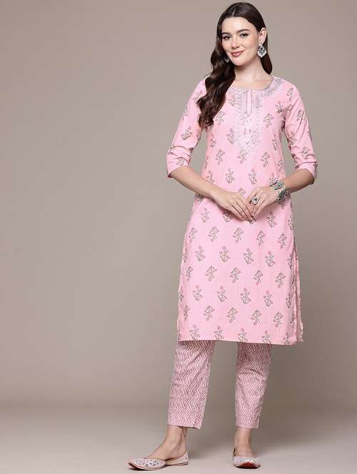 - Find gorgeous sets of ethnic wears in trending designs in pink colors suitable for festive wear of occasions.
