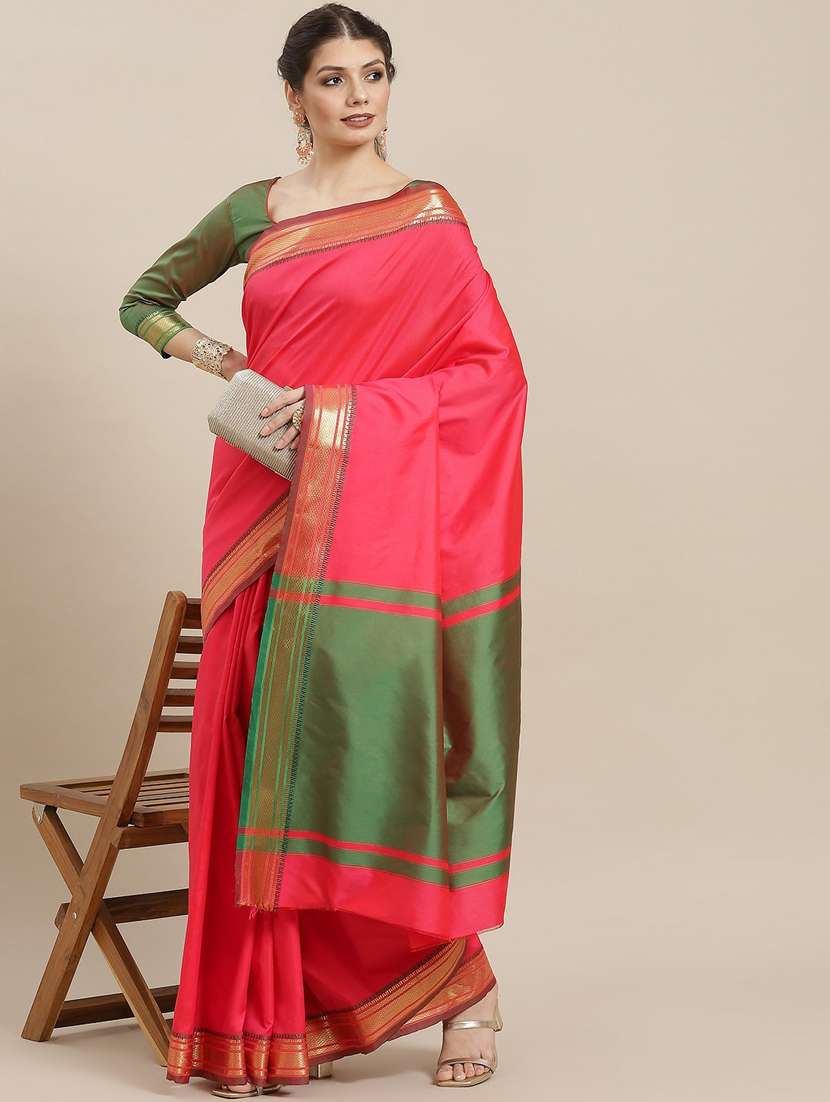 - » women's bordered pink colored saree with blouse