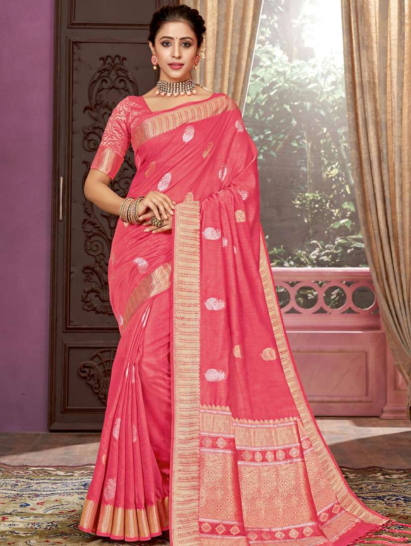 golden zari work woven saree