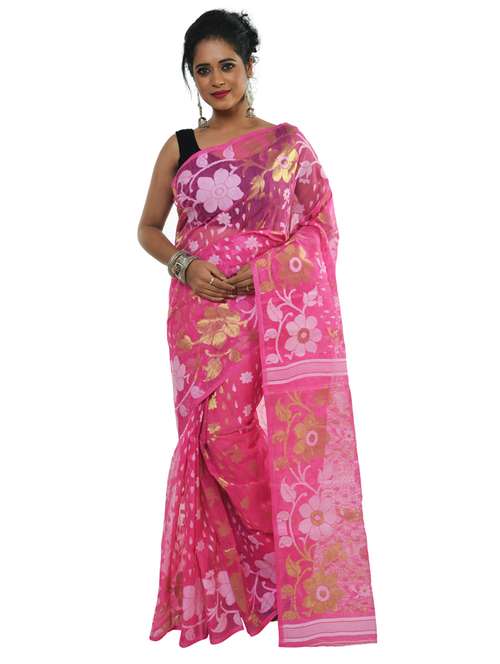 - » women pink self design jamdani saree