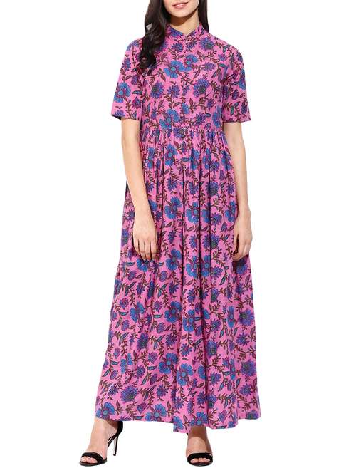 pink cotton flared kurta