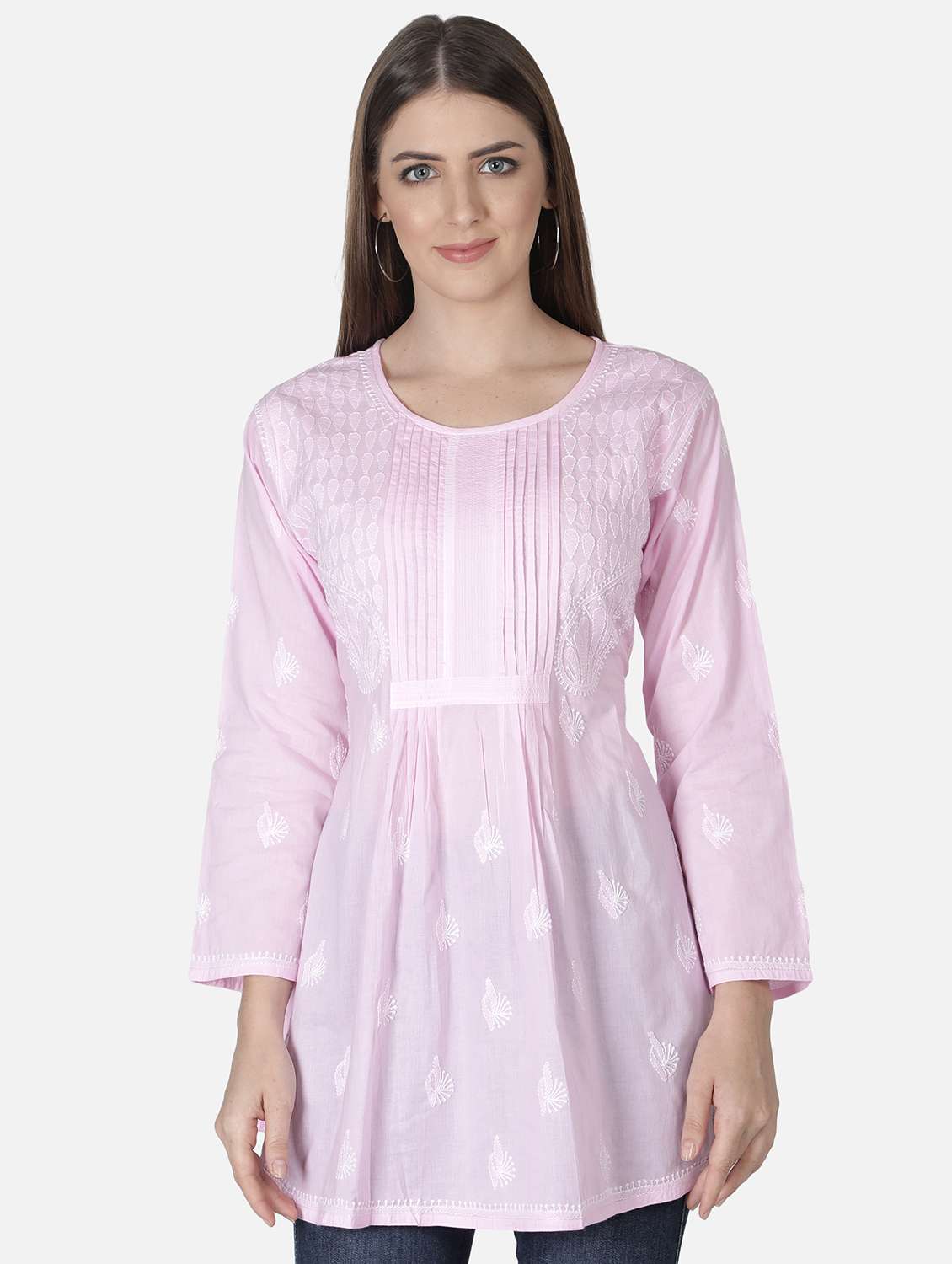 - » pink chikankari a-line kurti