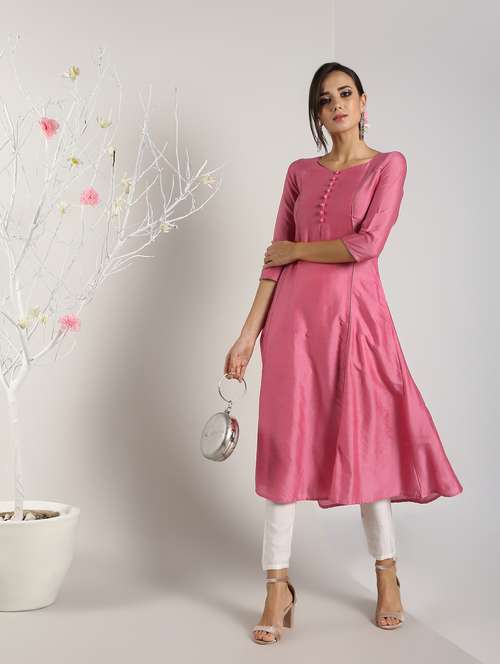 - » piping detailed silk flared kurta