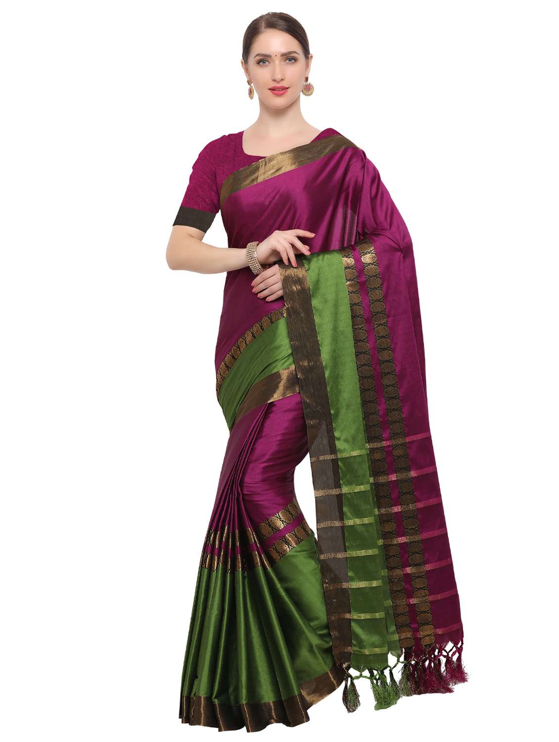 contrast zari border woven saree with blouse