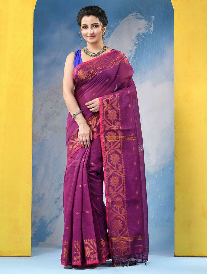 Bengali cotton sarees are ideal for casual or daytime wear, offering comfort and elegance for everyday events and informal gatherings. Pair the saree with traditional Bengali jewelry like gold bangles, jhumkas, and a statement necklace. Complete the look with a classic bindi and a hairstyle. The draping style of a Bengali saree can transform its look. Traditionally, it's pleated in front and tucked at the waist, with the pallu draping over the shoulder.