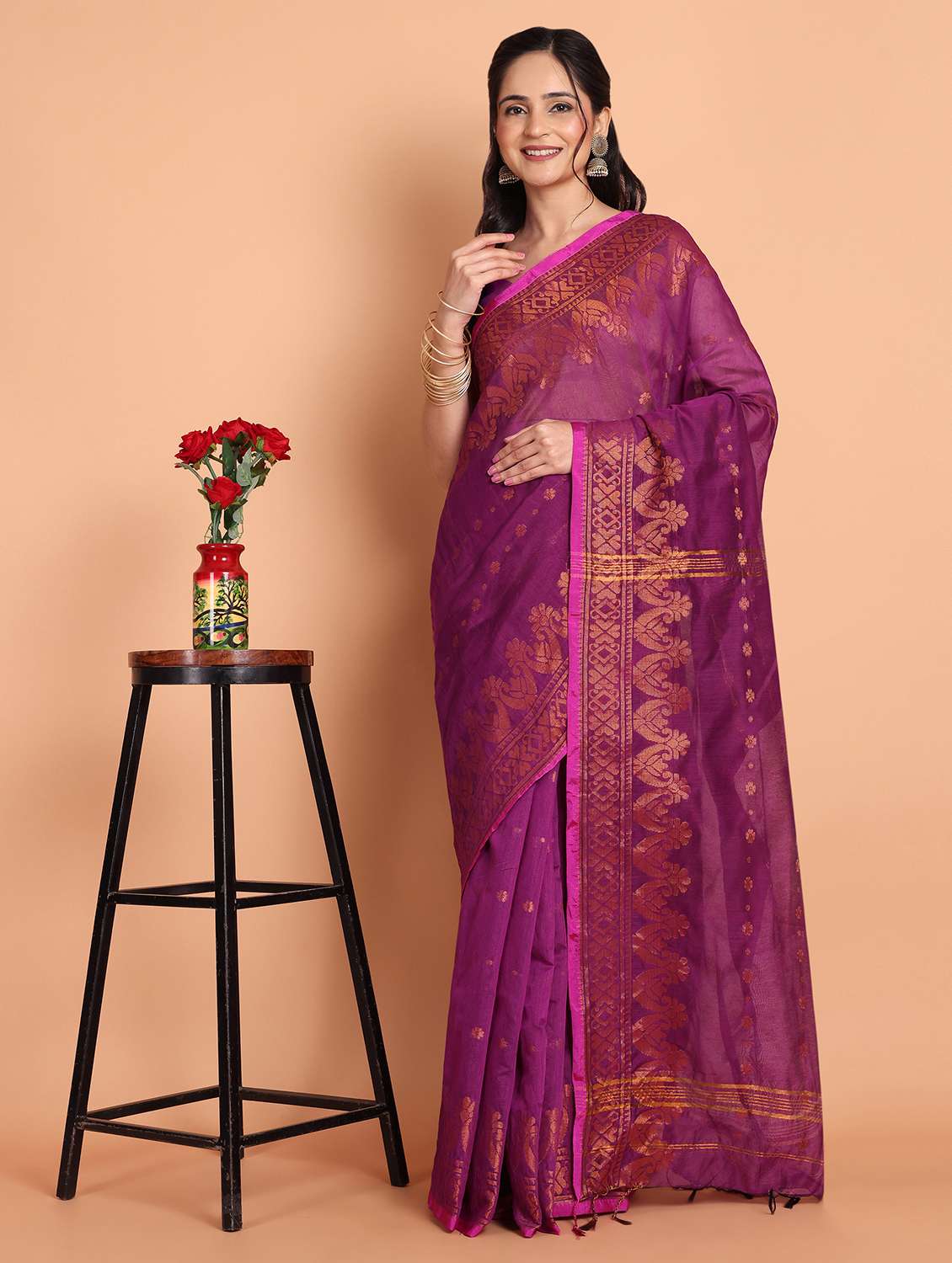 - » women self design handloom saree with blouse